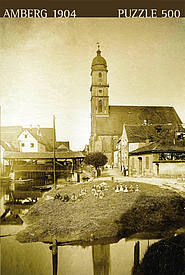 Das hochwertige Puzzle im Format 48x34 cm bietet einen fantastischen Rückblick auf die Schiffgasse mit der Basilika St. Martin im Jahr 1904. Nicht nur die zahlreichen offensichtlichen Unterschiede, sondern auch ein Unmenge an kleinen Details ziehen den Betrachter unaufhaltsam in eine gar nicht so ferne Vergangenheit und bieten viele Stunden Puzzlespaß.