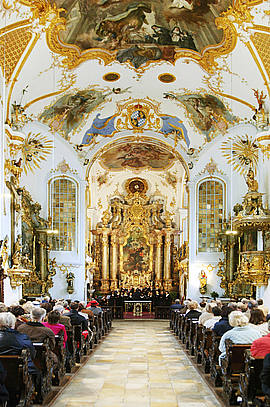 Die Pläne dazu stammten von Wolfgang Dientzenhofer, bei dem auch die Bauleitung lag. Das von diesem geschaffene „Rundell“ (Wiltmaister) erfuhr 1758 eine völlige Umgestaltung, mit der der Rokokostil in Amberg Einzug hielt. Während die Innenausstattung in der Hand Amberger Meister lag, so übernahm Franz Joachim Schlott die Bildhauer- und Schreinerarbeiten, konnte die damalige Superiorin Angela Viktoria von Orban den Hofmaler Gottfried Bernhard Götz für die Freskierung gewinnen.