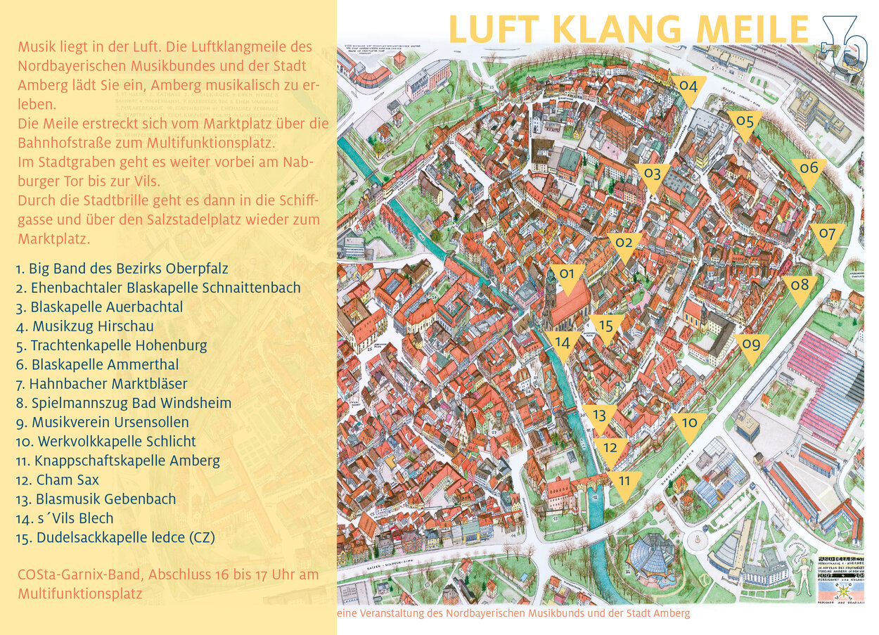 Musik liegt in der Luft. Die Luftklangmeile des Nordbayerischen Musikbundes und der Stadt Amberg lädt Sie ein, Amberg musikalisch zu erleben.