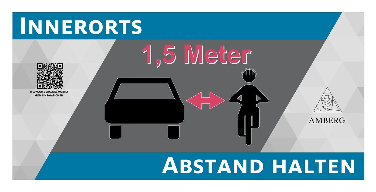Überholt ein Kfz-Fahrender den Fuß- oder Radverkehr auf der Straße, sind innerorts mindestens 1,5m Abstand einzuhalten. Außerorts beträgt der Seitenabstand mindestens 2,0m.