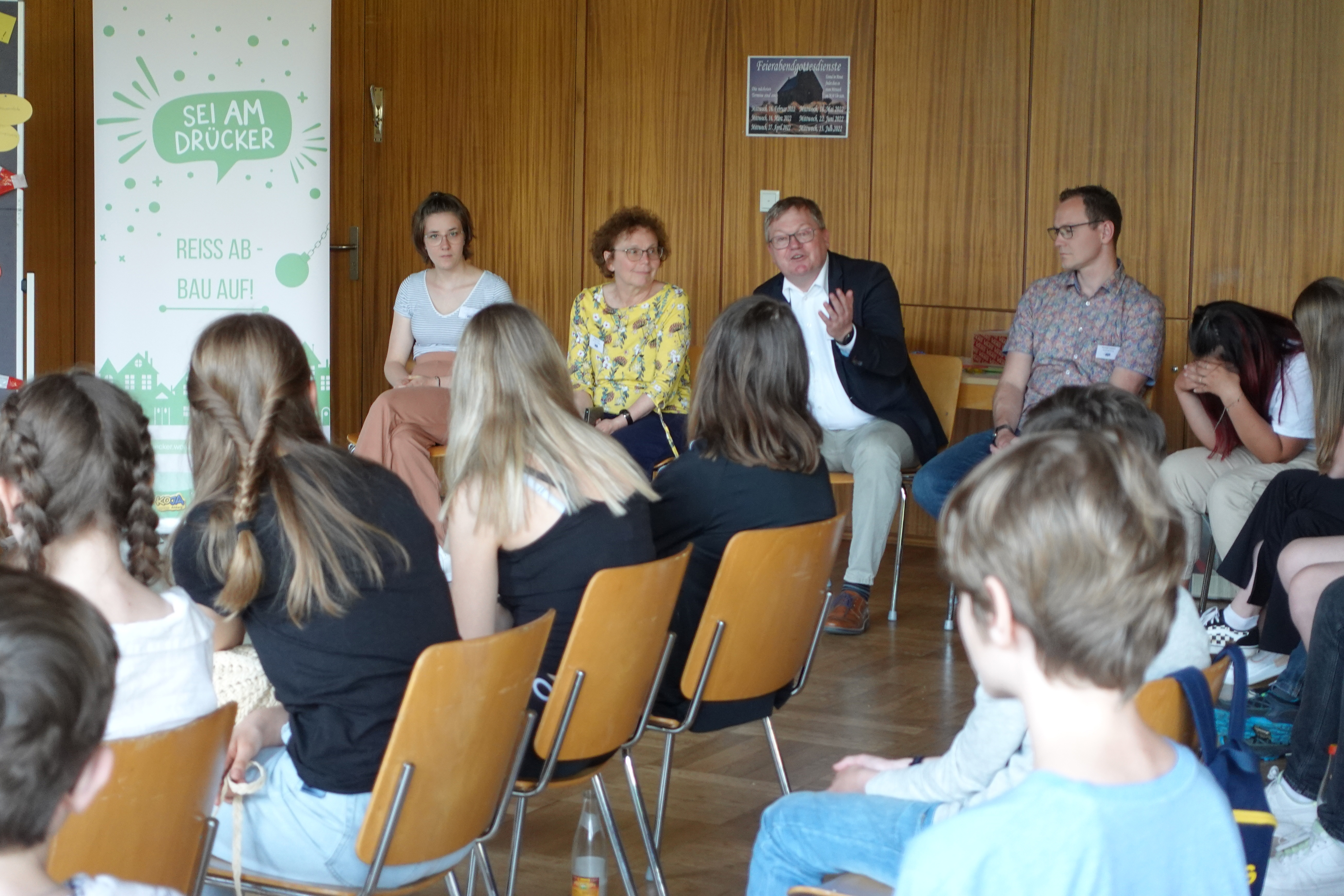 In der Stadt konnten nun die beiden ersten Veranstaltungen der Reihe „Sei AM Drücker“ durchgeführt werden. Zielgruppe sind Jugendliche zwischen 12 und 18 Jahren. Diskutiert und besprochen wurden vor allem Themen, die den Jugendlichen in ihrem Stadtteil wichtig sind. So richtete sich der erste Termin im Ring-Theater an Jugendliche aus der Innenstadt und dem Eisberg-Viertel, während beim zweiten Termin im Pfarrheim St. Michael junge Menschen aus dem D-Programm und dem Sebastianviertel am Zug waren. Rund 40 Jugendliche aus den jeweiligen Gebieten nutzten die Chance und beteiligten sich an der Aktion.
